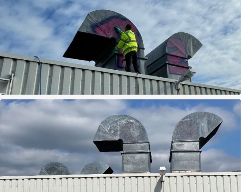 Unerwünschte Graffitis entfernen wir materialschonend und gründlich. Auf Wunsch schützen wir die Oberfläche anschließend mit einem Anti-Graffiti-Schutz.